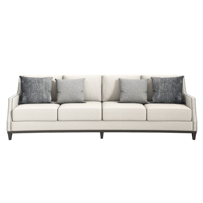 This elegant sofa from Roots features a clean, modern design with soft cushions and stylish throw pillows. Its compact and versatile design makes it a perfect fit for contemporary living spaces