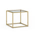 طاولة جانبية مربعة أنيقة تناسب أي غرفة بلونها الذهبي اللامع والزجاج العلوي الذي يعطي مظهرًا فريدًا للإكسسوارات.