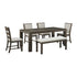 Grady 6PC Dining Set (72in Table + 4 Chairs + Bench) in Brown