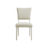 A side chair that is simple in beauty and provides ideal comfort. It pairs a light wood finish with an upholstered white fabric for the perfect touch of airiness to any and all spaces. The foam cushioning will provide comfortable seating for your family and guests as you sit and come together.