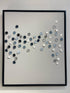 Modern raised plaster board of flower petals in sky blue, blue, and gray with a black frame