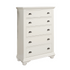 The Brookpine 5-Drawer Chest is the perfect addition to your bedroom! This vertical chest comes with five, spacious drawers; perfect for keeping all of your belongings neatly stored away. The bottom drawer has a dust proofing layer to help protect your clothes. Dark metal hardware completes the drawer fronts. This chest of drawers brings the cottage charm with its casual white finish. Bevel edges and bun feet complete the look of this transitional design.