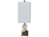 Caprice Table 25''Ht., Crystal & Metal Antique Brass & Crystal Finish 8/8 x 8/8 x 14 Soft White Linen Shade