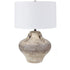 Dover Handfinished ''Jug'' Lamp with Handles 29''Ht.,Ceramic Sand Stone Finish 20 x 20 x 12 Drum White linen Shade