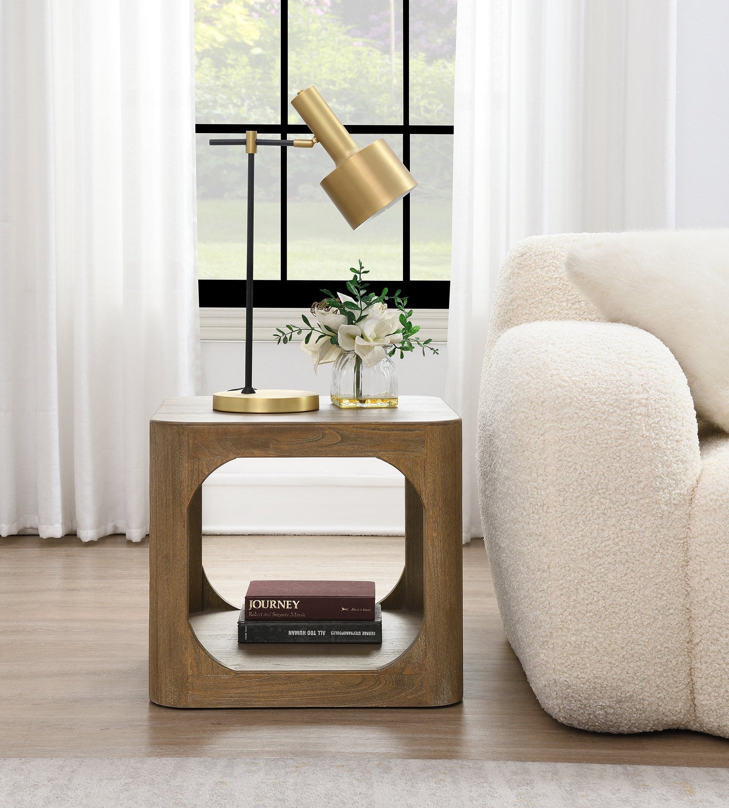 Elm Wood Side Table Transform your living space into an elegant and cozy retreat with the stunning and functional Elm Wood Side Table. Handcrafted from durable elm wood, this table adds a touch of natural beauty to any room. Perfect for displaying your favorite decor, it also offers additional storage space with its lower shelf. Upgrade your home decor and create a warm and inviting atmosphere with the Elm Wood Side Table.
