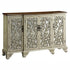 This traditional sideboard features four mirrored doors that open to reveal ample storage space for dishes, linens, or other household items. The sideboard is made of wood and has a rectangular shape. The mirrored doors add a touch of elegance and glamour to the piece, while the wooden frame and top provide stability and durability. This sideboard is sure to make a statement in any dining room or living room.