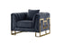 Enjoy this opulent and classy addition to your home! This Luxe Rasha Chair by Roots has a classic sleek beauty to it with it's dark blue and gold design. This velvety 1-seater belongs in any luxe room that wants to add a royal and plush feel to its surroundings. Pair this smooth and sophisticated piece with gold accents and impress while you decompress!